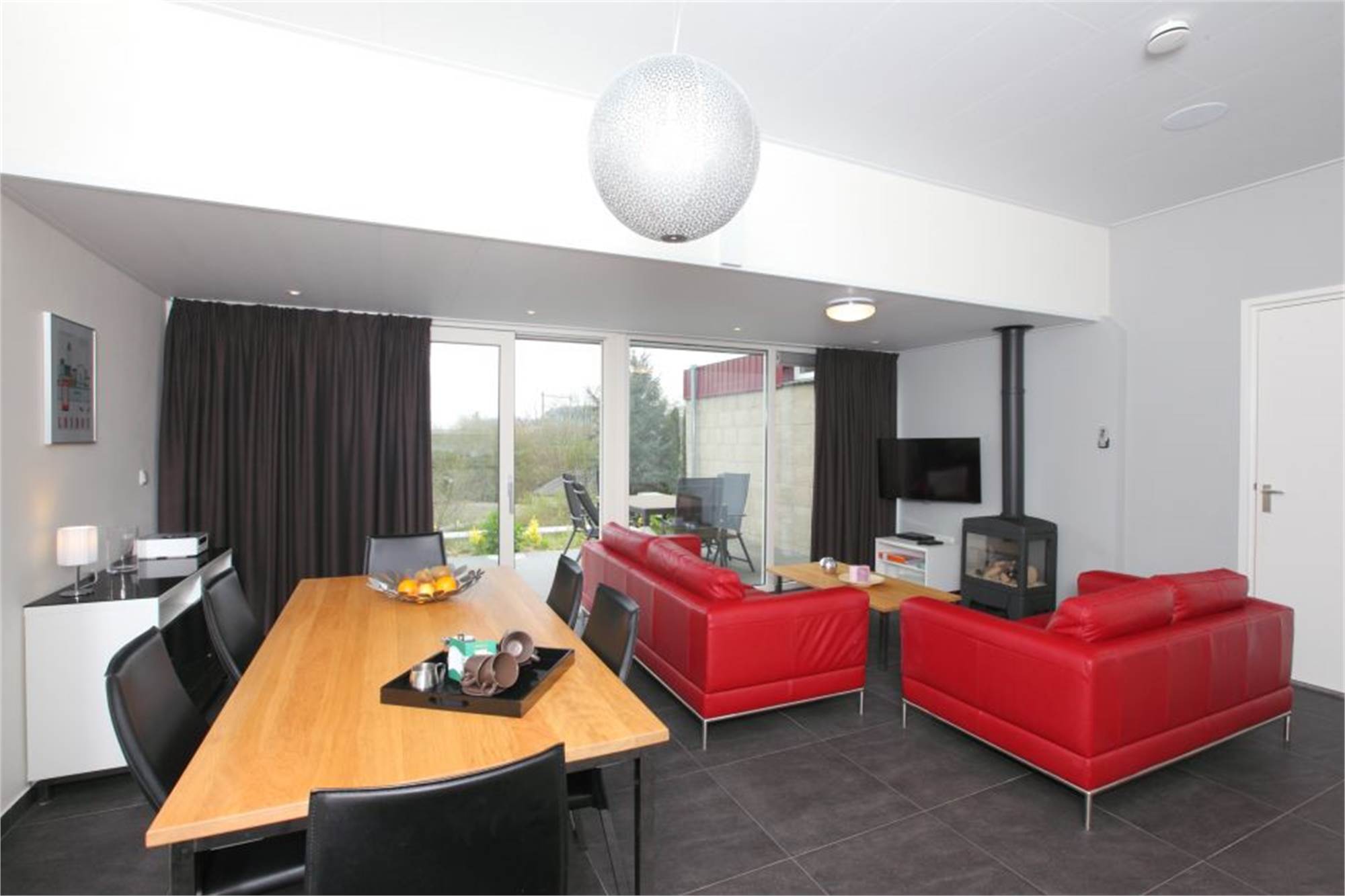 Layout: Living room with floor heating system, flatscreen television, DVD player, HiFi set and gas-powered fireplace. Open-plan kitchen equipped with induction cooker, refrigerator, combination microwave, dishwasher, oven and coffee pad machine. Two bedrooms with two single box spring beds and a flatscreen television each. Bathroom with floor heating system, showercabin with massage and steam feature, bubble bath and toilet. Separate toilet. Storage room with charging station for electrically powered bicycles and washing machine.