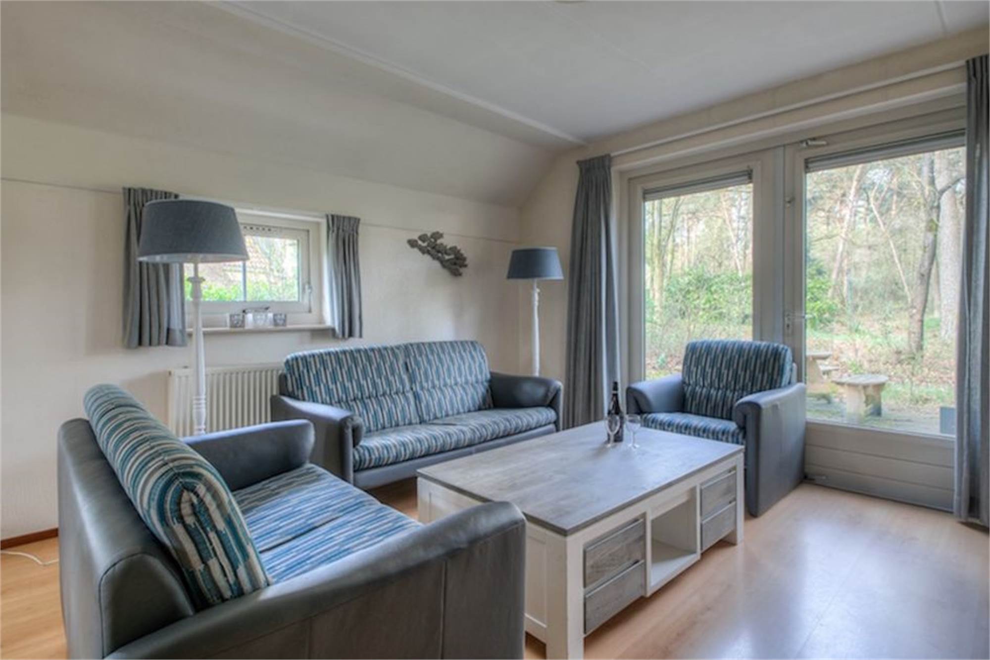 Ground floor: entrance with hallway and toilet. Spacious living room with living and dining area. Open-plan kitchen equipped with coffee machine and microwave. One bedroom on the ground floor with two single beds. Bathroom with washbasin and bath or shower.