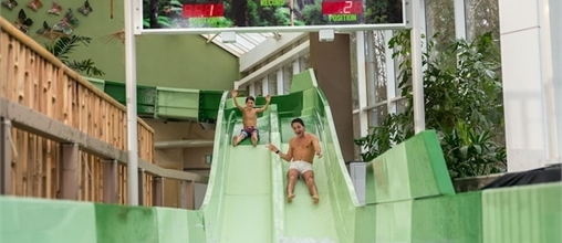 Ready? Go! You can race against each other in Aqua Mundo, on a slide with two tubes next to each other. Not sure who won, well the big splash at the end will tell you. A clock at the end of the slide displays the exact result.