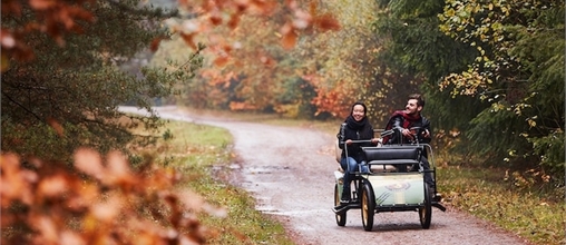 The sidecar is a pedal go-kart type vehicle that allows two people to travel together (1 adult and 1 child, max. 1.55m).
