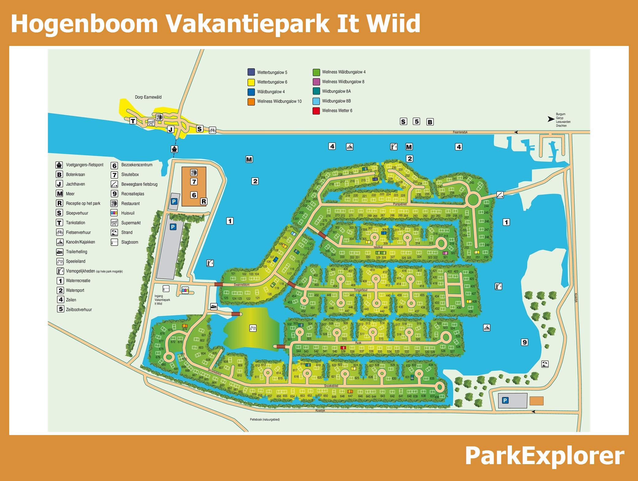 Up-to-date and comprehensive village map of Vakantiepark It Wiid with all accommodations and facilities, also available as PDF.